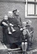 Sara Regina Norder - Westra met haar kleinkinderen: Klaas, Regina, Johannes, Liskje en Sjo